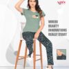 – Elegant Design: Fitted top with a sleek graphic print and stylish matching bottoms.