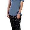 Material analysis: pyjamas with a half -sleeved t-shirt/shirt and bottoms in soft cotton flannel bottoms with covered eleastication at the waist.